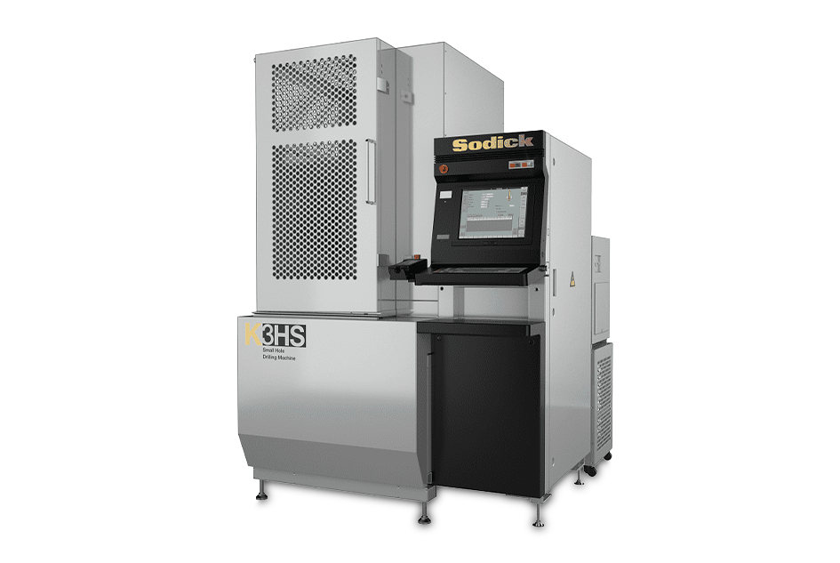 Das Spitzenmodell K3HS verfügt über eine NC-Steuerung und ermöglicht das Setzen mehrerer Startbohrungen für Drahterodieren oder die automatisierte Fertigung von Bauteilen.